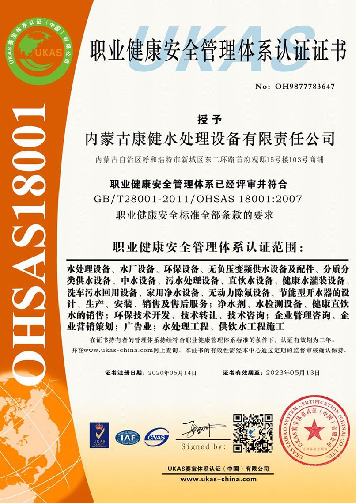 - 內(nèi)蒙古康健水處理設(shè)備有限責(zé)任公司是專業(yè)生產(chǎn)制造水處理設(shè)備、飲料設(shè)備、奶設(shè)備、殺菌設(shè)備、灌裝設(shè)備五大系列90余種配套產(chǎn)品。在反滲透、超濾、納濾、EDI模塊、等膜分離領(lǐng)域有著雄厚的技術(shù)實(shí)力,同時(shí)在水廠設(shè)計(jì)、中水回用、污水處理、分質(zhì)供水、無(wú)負(fù)壓變頻供水、鍋爐軟化水設(shè)備等領(lǐng)域有完善的技術(shù)團(tuán)隊(duì)和營(yíng)銷網(wǎng)絡(luò)。公司坐落在遼闊大草原上美麗的首府——呼和浩特,是內(nèi)蒙古自治區(qū)唯一一家具有自主生產(chǎn)能力的企業(yè)。 “上善若水,水利萬(wàn)物而不爭(zhēng)”康健水工自成立以來(lái),始終堅(jiān)持“改善水質(zhì)、造福人類、服務(wù)社會(huì)、產(chǎn)業(yè)報(bào)國(guó)”的企業(yè)信條,以致力于開創(chuàng)人類綠色健康生活為己任,秉承“關(guān)愛生命、責(zé)任至上”的企業(yè)宗旨,成就了享譽(yù)四方的國(guó)內(nèi)知名水處理企業(yè)。 水是生命的源泉、工業(yè)的血液、城市的命脈。水是不可替代的寶貴資源。節(jié)約用水,關(guān)注點(diǎn)滴 為節(jié)約水資源貢獻(xiàn)一份力量, 健康飲水,利在當(dāng)代,功在千秋! 只有在這里,才能領(lǐng)會(huì)水的精髓;只有在這里,才...